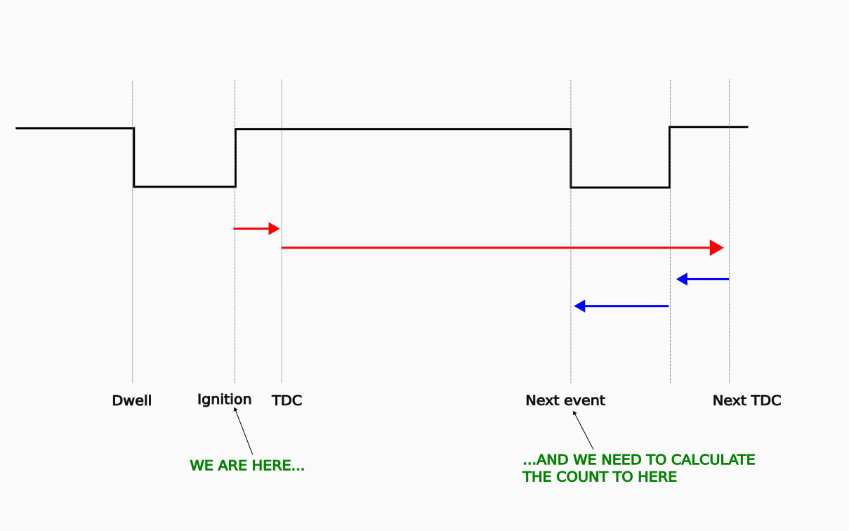 The best way to think about it is to assume that when the spark fires, we already have a next-TDC tooth count stored in a variable. Don’t worry about where it came from just yet!