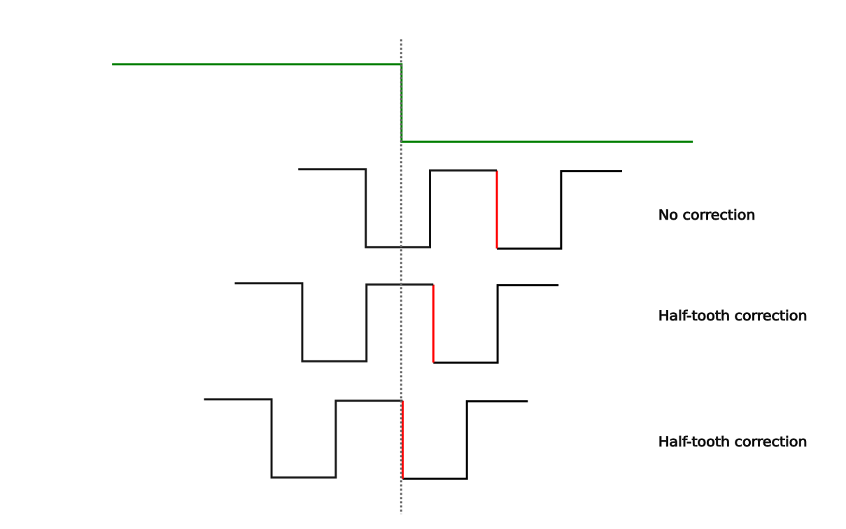 If if a half-tooth correction is required, the program waits for an extra falling edge.