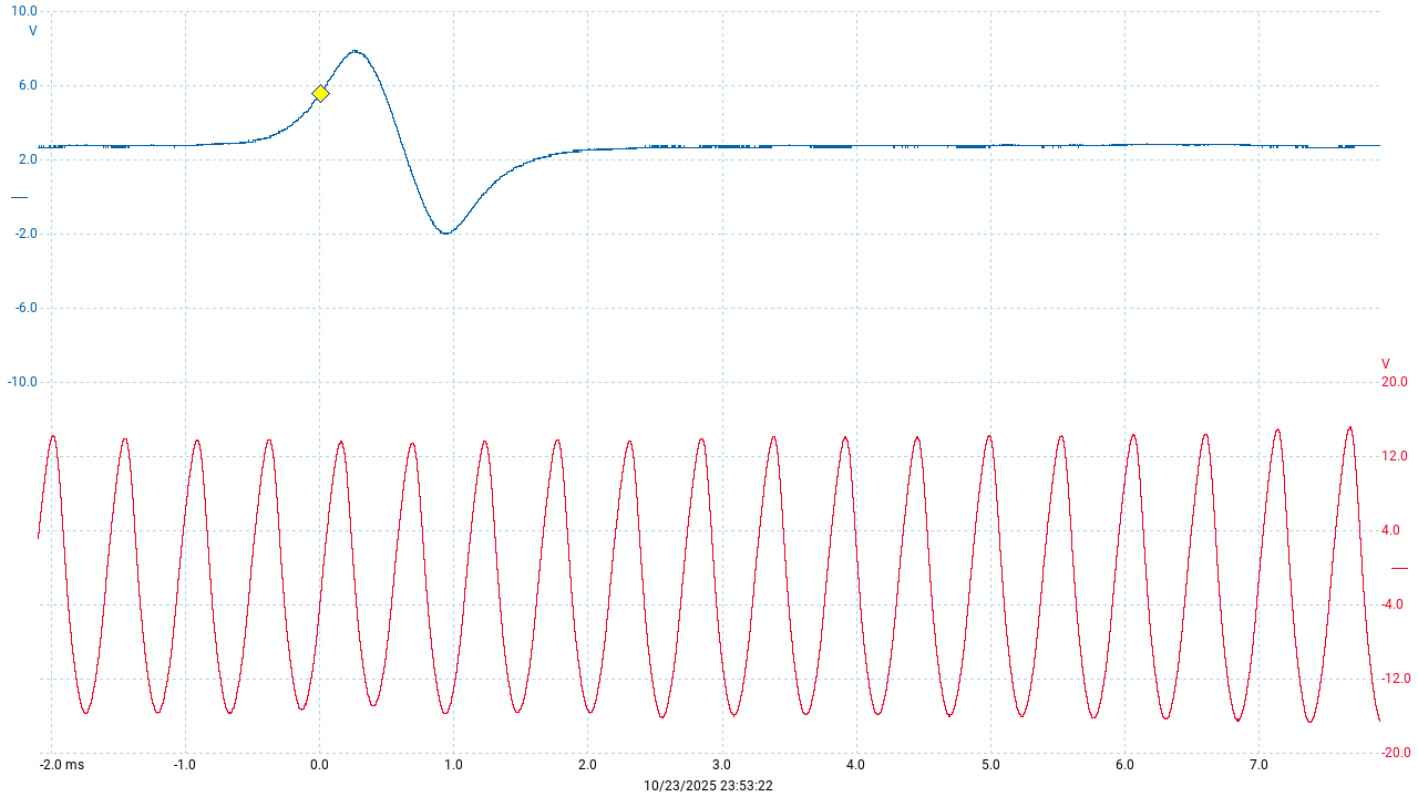 You might guess that the point where the pulse crosses zero volts on the way down is the exact moment that the object being sensed is closest to the sensor, and you’d be right.
