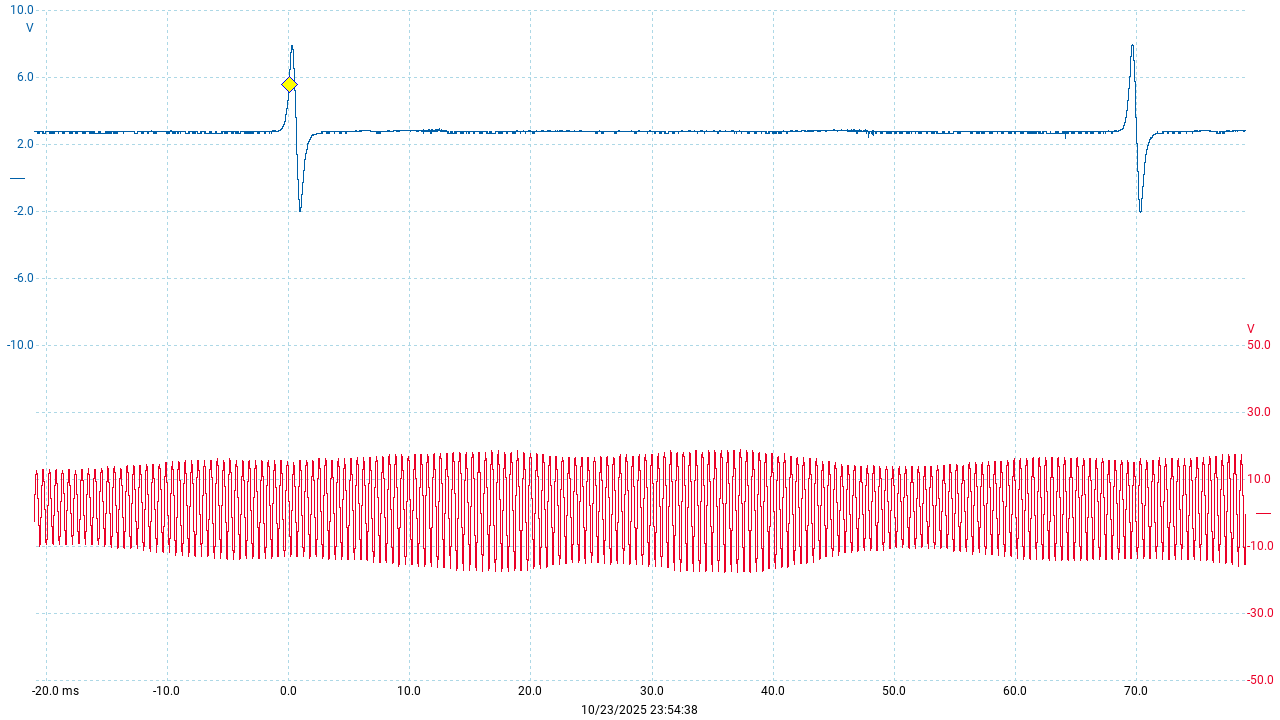 Here’s a trace of the KLR trigger signal (red) along with the ignition (blue) and the others:
